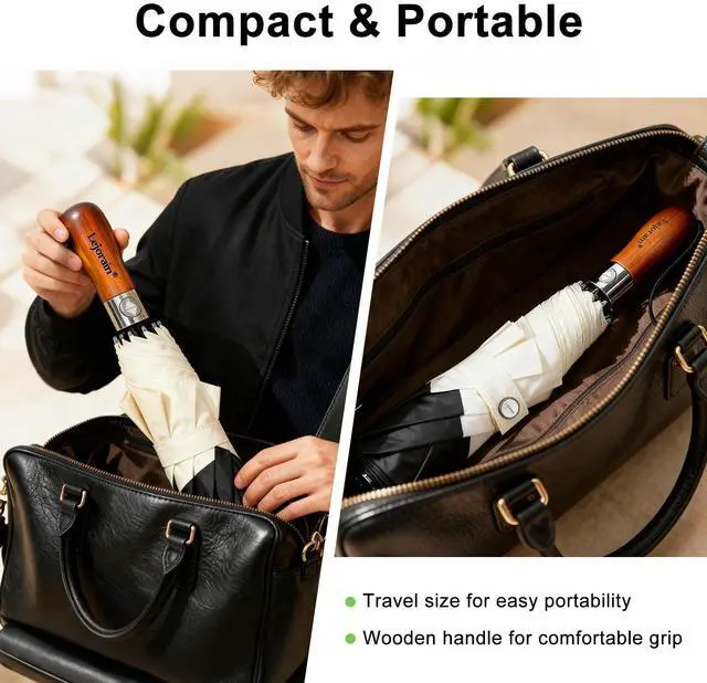Lejorain large compact umbrella has oversized canopy big enough as a family umbrella, Enjoy rainy day with your family!
