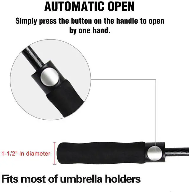 - An extremely strong fiberglass shaft gives the umbrella unsurpassed stability. Eight strong umbrella ribs make sure it can hold up strong wind. So it won't be lifted out of your hands.