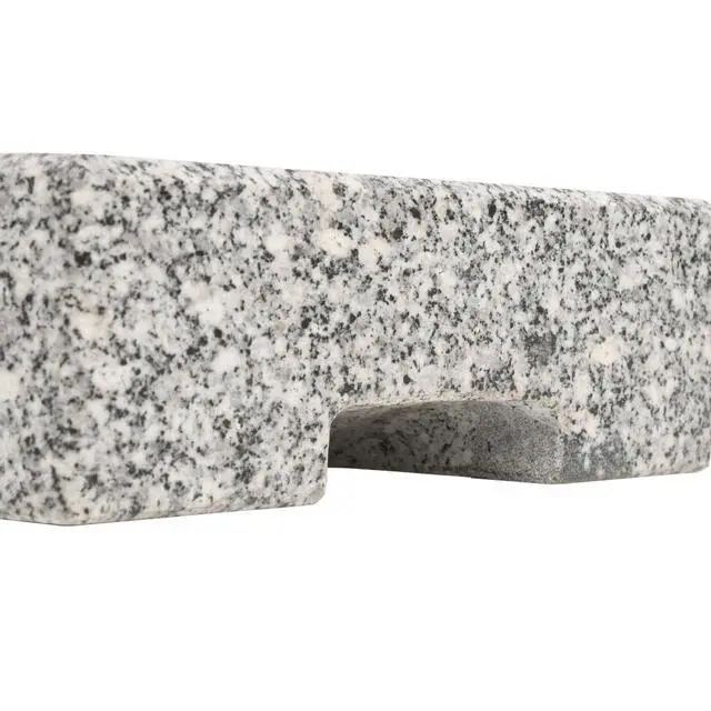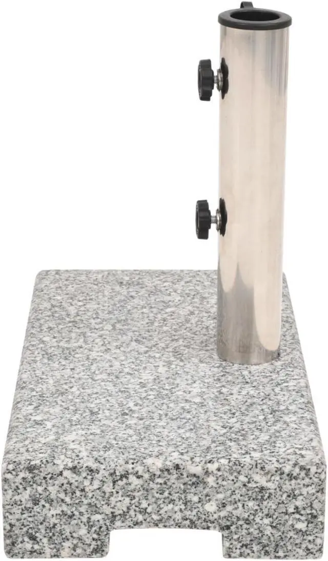 The umbrella base has a durable granite construction that is very stable thanks to its hefty weight. The granite also has a high-end look and feel that gives the umbrella base a sophisticated appearance that will add a touch of elegance to your outdoor living space and complement your luxurious garden furniture. The tube is made of stainless steel.
