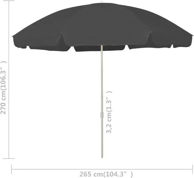 This Large Anthracite Beach Parasol stands tall at 106.3 in and has a wide 104.3 in diameter for lots of shade. Its sleek anthracite color not only looks good but also provides solid UV protection, making it a must-have for summer days at the beach or poolside. You'll love how it mixes style and usefulness, keeping you comfy while you soak up the sun.