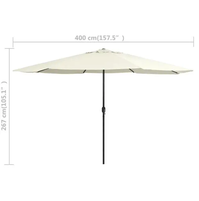 This large round garden parasol gives you loads of shade with its big 153.5 inch diameter, making it perfect for outdoor spots like patios, gardens, and balconies. With a sturdy metal pole and a handy manual crank system, this parasol not only enhances your outdoor experience but also adds a stylish touch with its elegant sand white color.