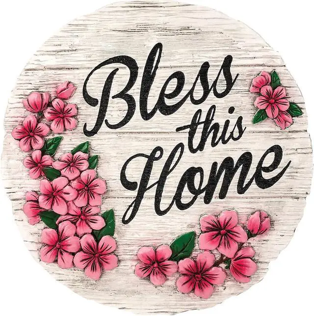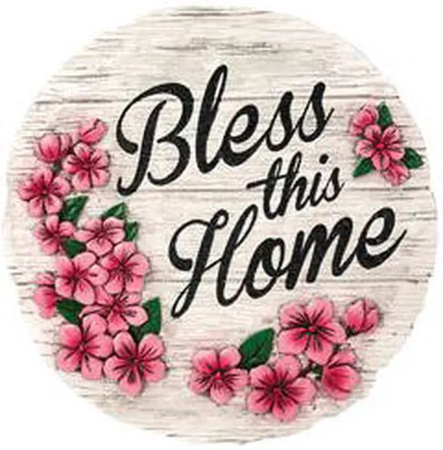 SPOONTIQUES 13220 BLESS THIS HOME STEPPING STONEFor Indoor and Outdoor Use Can also be Used as a Decorative Wall Plaque Complete with Hardware for Hanging 9 to 10 Approximate Diameter Poly Resin Construction