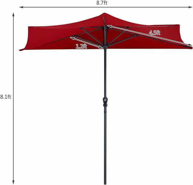 This Is Our 9ft Half Round Market Umbrella. The Umbrella Features A Popular Color And Stylish Design That Will Live Up Any Outdoor Living Space. It Is Design To Protect From The Hot Sun And Give You A Cool And Comfortable Outdoor Living Space In Summer. The Highest Point From The Floor Reach 8.1 Ft, And You Can Put Your Patio Furniture Set Under This Umbrella To Prevent You And Your Furniture Set From The Sun. Do Not Hesitate, Just Buy One. Stand Not Included!