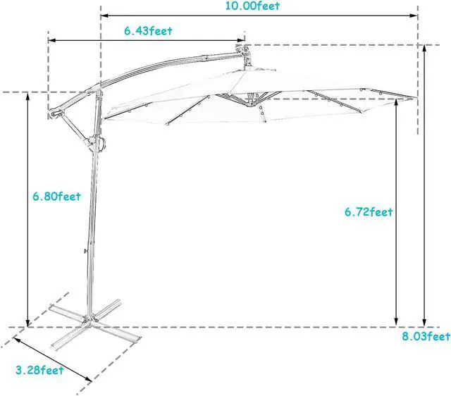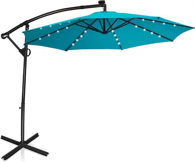 1 x 10ft Solar Powered Offset Umbrella With Cross Base