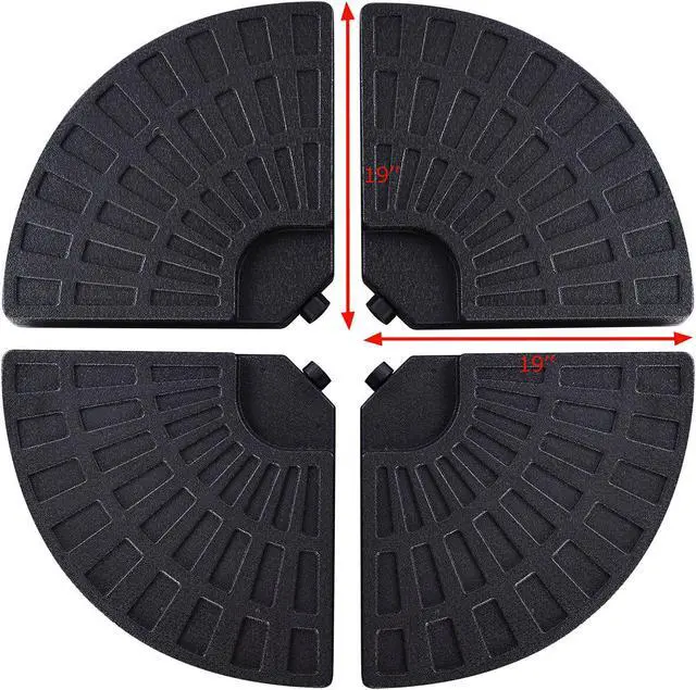This our brand new water filled umbrella base ,a sturdy base for your patio umbrella. Its constructed of heavy-duty HDPE plastic with weather resistant UV protection that prevents color from fading and easy to maintain. It can be filled with 145lbs sand /115lbs water ,so that plates provide additional weight make your patio umbrella stand perfectly in windy conditions, You dont need to worry any puff of wind which disturbing your summer relax in the shade. Don't hesitate to buy one !