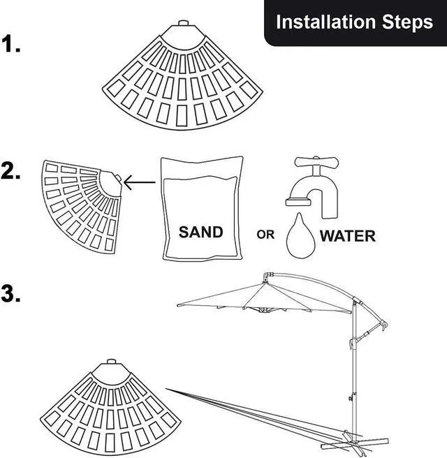• Simple Assembly: You just need to fill the water base, and then the umbrella can be held securely and evenly in your garden, patio or other places!