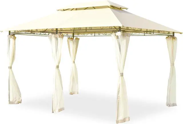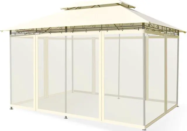 All-Weather Material: The canopy of this gazebo is made of top-grade polyester fabric, which is not only built-to-last and rip resistant, but also sunproof so that you can relax in the cool shade. And the unique double roof design ensures exquisite air ventilation and reduction of wind resistance.