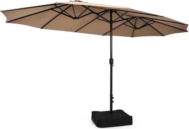 Double Sided Design for Larger Shaded Area: This patio umbrella is characterized by its 15ft double-sized canopy, which provides extra-large shading coverage for your whole family and friends. So you can put furniture set under the umbrella to relax and enjoy the breeze during leisure time.