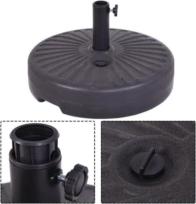 Hand-turn Knob to Fix the Umbrella: The round base design of this product is big enough to hold the umbrella. This base includes a hand-turn knob for securing umbrella. Double lock design, one hole inside and one knob outside which could fix your umbrella tight.