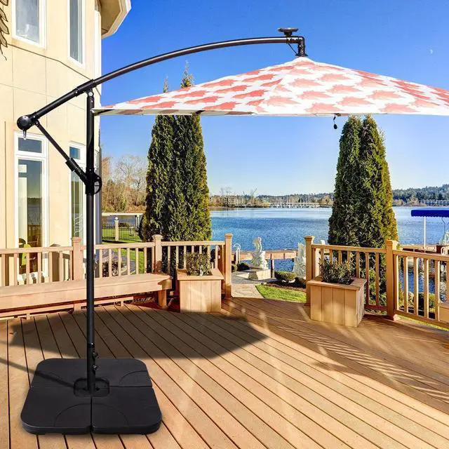 Fill Water or Sand: The cantilever umbrella base can weigh up to 180 lbs when it is filled with sand, and up to 130 lbs when filled with water, so your outdoor umbrella will remain upright in heavy winds.