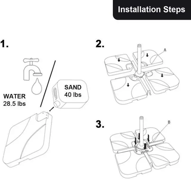 Easy-to-Fill Spouts: Each plate has a fill spout and a twist cap, which make the patio umbrella base can be filled easily and quickly.