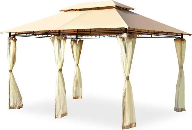 All-Weather Material: The canopy of this gazebo is made of top-grade polyester fabric, which is not only built-to-last and rip resistant, but also sunproof so that you can relax in the cool shade. And the unique double roof design ensures exquisite air ventilation and reduction of wind resistance.