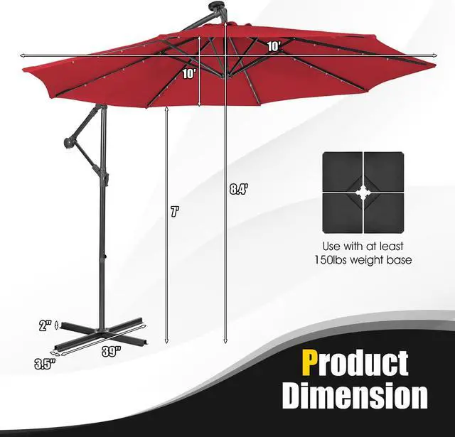 LED Solar Lights: 32 built-in solar-powered LED lights add a relaxed and informal atmosphere, perfect for evening gatherings.