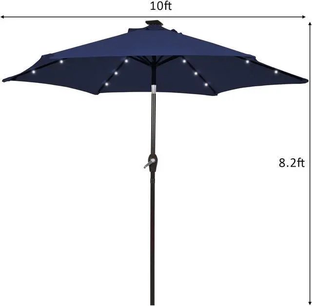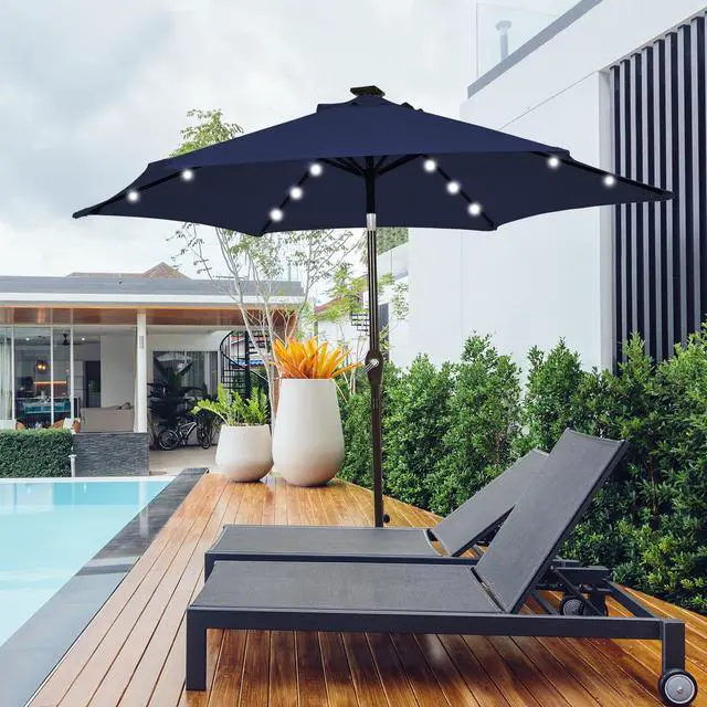 Bright Solar LED Lights: Equipped with 3 LED lights on each rib, this patio umbrella has a total of 24 built-in LED lights to help provide perfect lighting and romantic atmosphere at night. What's more, these lights are powered by solar panel on the canopy, which can save energy in a green and efficient way.