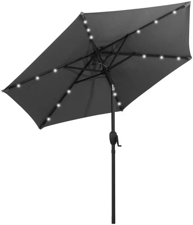 Description: 18 light beads create a romantic atmosphereEnergy-saving solar panel runs for 6 hours after being fully chargedSwitch on the pole is easy to access (please turn off it during the day) Sun-proof polyester fabric is wear-resistant and anti-fadingEffortlessly enjoy the optimal shade throughout the day with push button tiltCrank handle allows you to open and close the umbrella within secondsFeaturing an air vent to offer extra cool and improve stabilityThick heavy-duty umbrella ribs promise a sturdy structureDetachable 2-section poles and fixing strap allow for easy storageReinforced rib pockets keep the umbrella ribs in placeNote: Weighted umbrella base is required (not included) Assembly needed