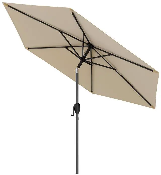 Description: Sun-proof polyester fabric is wear-resistant and anti-fadingTilt mechanism enables you to customize the shade area according to your preferencesCrank handle allows you to effortlessly open and close the umbrellaFeaturing an air vent to promote air circulation and improve stabilityThick heavy-duty umbrella ribs promise a sturdy structureFixing strap with hook & loop fastener helps fasten the folding umbrellaDetachable 2-section poles feature spring button for quick connectionReinforced rib pockets keep the umbrella ribs in placeAssembly needed