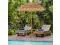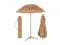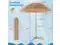 Description: Made of polyester fabric and PP thatch drizzle-resistant sun-protective Premium materials provide better protection from outdoor elements The sturdy base features 2 knobs to fix the pole and the quadruple base 3 legs of the base are telescoping keep excellent stability on different grounds The base and umbrella are foldable saving storage space when not in use The umbrella canopy can be tilted allowing you to find the perfect shade Portable and lightweight design with a carrying bag easy to transport only weighs 8.5 lbs The sturdy pole with wood grains also adds a touch of nature and elegance The protective rib pockets can effectively prevent the canopy from punctures The high-strength metal ribs and safe latch design enhance overall stability