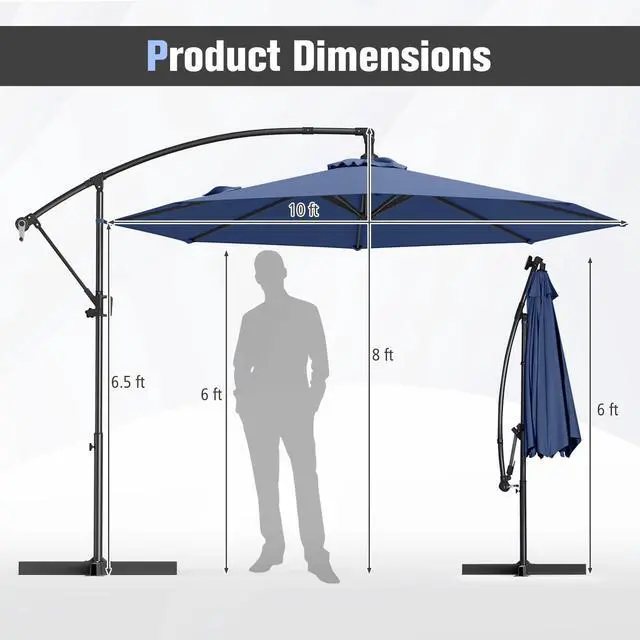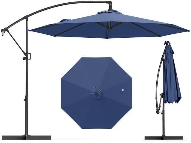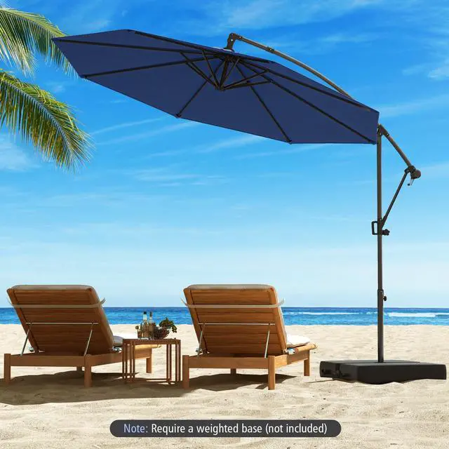 SlickBlue 10 Feet Offset Hanging Umbrella with Base and Infinite Tilt-Navy