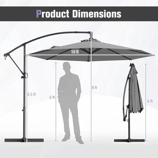 SlickBlue 10 Feet Offset Hanging Umbrella with Base and Infinite Tilt-Grey