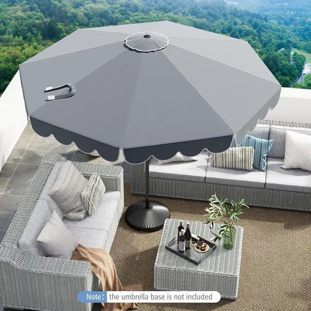Description: � Crafted from a reliable polyester canopy ensure excellent weather resistance� Equipped with ruffled edges for an elegant look and increased sunshade area� Designed with a top air vent for air circulation and enhanced stability� The push button tilt function helps block the sun from different directions� Features a 2-section design and hassle-free crank handle easy to install and detach� Features a convenient loop strap to secure the umbrella into a compact size� Equipped with protective rib pockets prevent the canopy from tearing� 8 heavy-duty metal ribs ensure unparalleled stability and wind resistance� Equipped with a safety latch prevent the umbrella from accidental closing