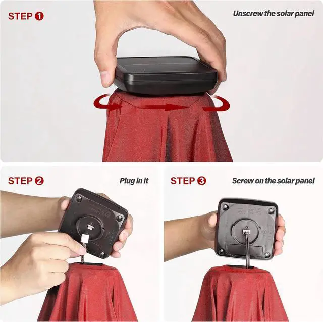 Solar-powered 32 LEDs provide energy-efficient lighting with rechargeable NiMH battery, 1800AM, 4 LED lights on each rib, 8 steel rib construction. The solar can work for 6-7 hours when battery is in full status