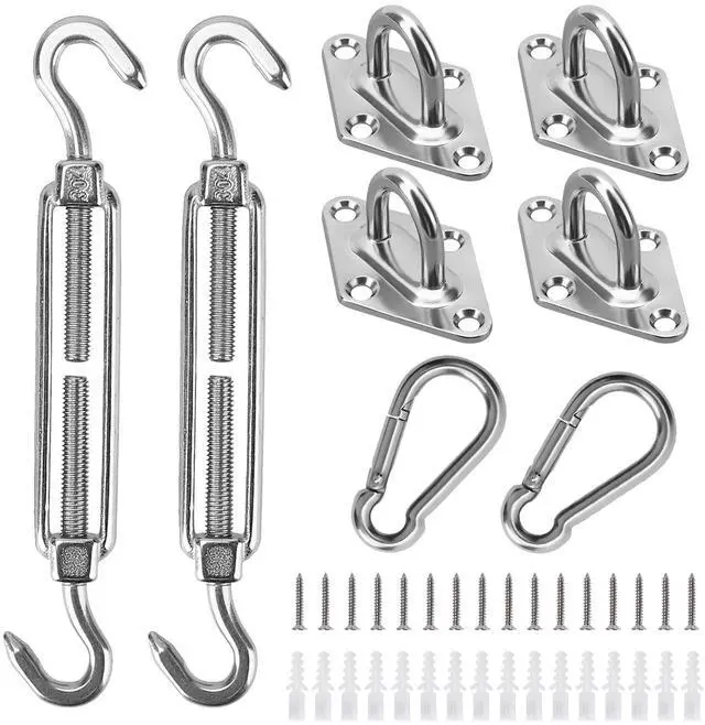 Perfect Hardware Kit: Our hardware set includes 4pcs M5 Rhombus Pad Eyes, 2pcs M5 Turnbuckles, 2pcs Snap Hooks, 16pcs M4 Screws 16pcs Plastic Expansions, which can easily figure out the installation of your shade sail.