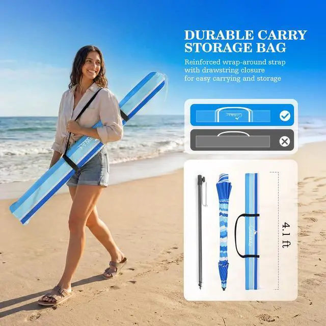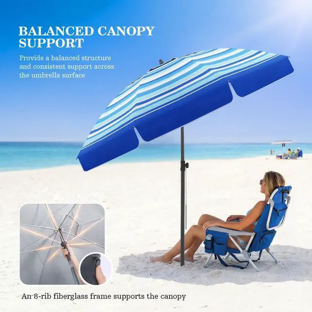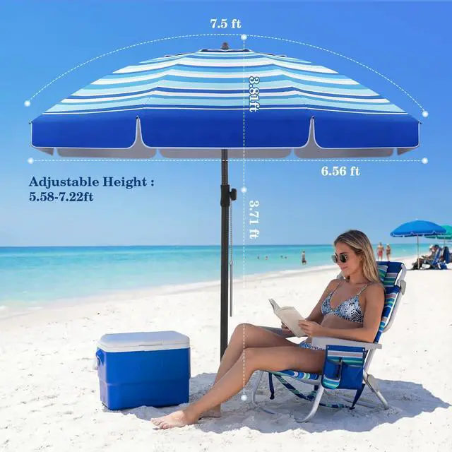 7.5FT Beach Umbrella, Heavy Duty Windproof Beach Umbrellas with Sand Anchor & Tilt, Sun Protection Portable Beach Umbrella with Carrying Bag for Beach, Patio Garden Pool Outdoor beach umbrella with sand anchor; portable beach umbrella; beach umbrellas for sand; beach umbrella; beach umbrellas; beach umbrellas for sand heavy duty wind portable; beach umbrella for sand; umbrella for beach; windproof beach umbrellas for sand