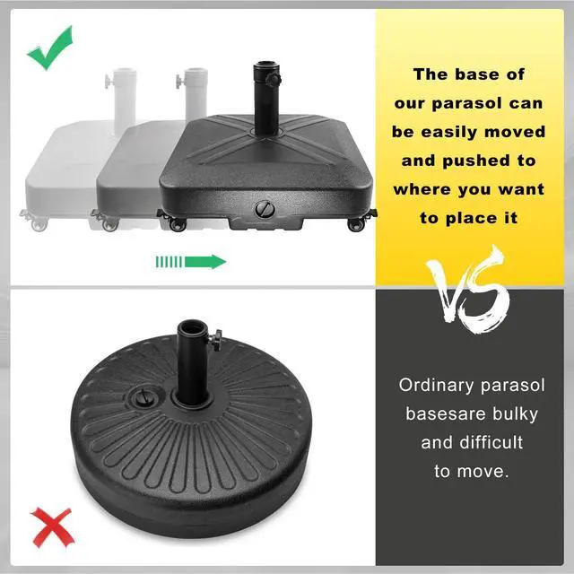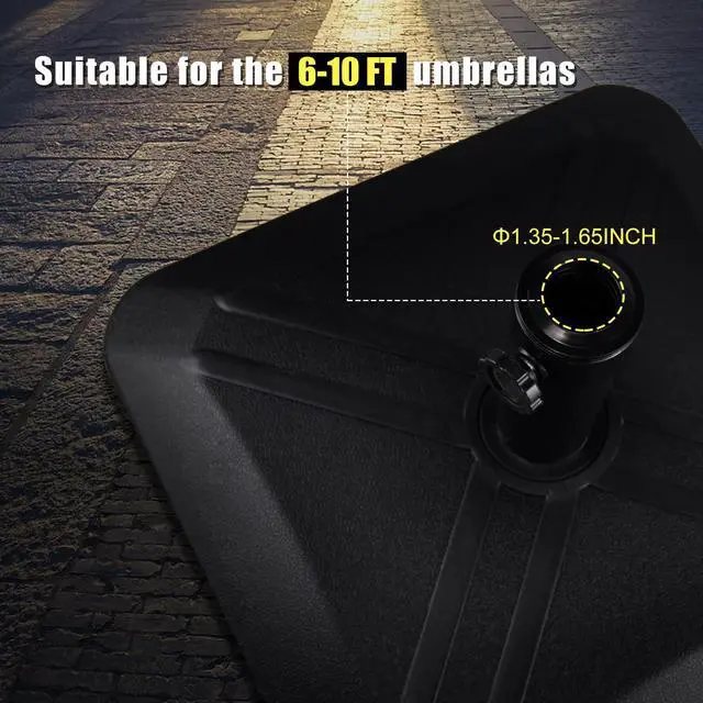 Elegant and Classic DesignThe plastic outdoor patio table umbrella base has an elegant and classic design, featuring a line style and a black color that can complement various decor styles. It is suitable for placement in balconies, yards, or next to swimming pools, serving as a great partner for your market umbrella.