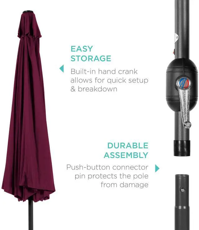 CONVENIENT CRANK HANDLE: Features a crank handle for easy opening/closing, while its adjustable easy-tilt system allows for optimal protection from the sun