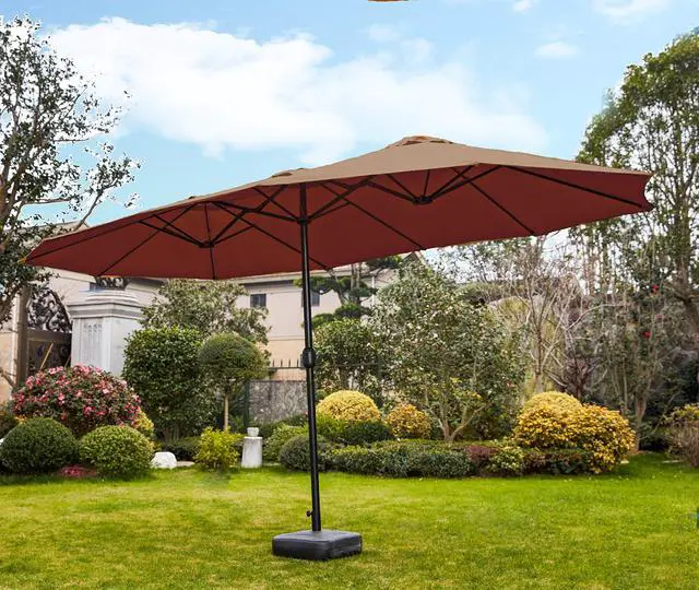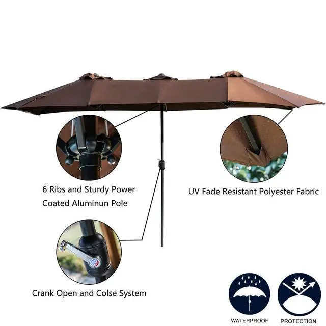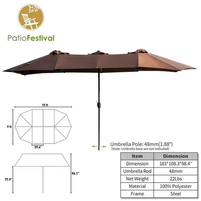 Too much sun can take a toll on your skin. Protect yourself from the potential long-term effects of the sun with our 15-Foot Patio Umbrella. This patio umbrella are made of high-quality metal, provide solid construction, you can feel comfortable relaxing under this shady shield for hours.