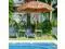 Tilt Design and Adjustable Height: The Hawaii tiki umbrella can be tilted in 2 directions to block the sun from different directions, which can provide you a cool shade all the time. And the tilting angle ranges from 0° to 40°. Furthermore, the height can also be adjusted by adjusting the depth of the upper pole insertion.