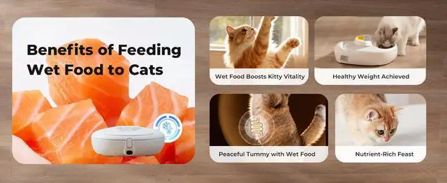 Designed to maintain optimal freshness, this feeder keeps wet food moist, flavorful, and appealing for up to 24 hours. A wet food diet supports hydration, urinary health, and digestion, while consistent temperature control helps preserve both texture and taste. It encourages healthier eating habits and ensures your cat enjoys every meal.