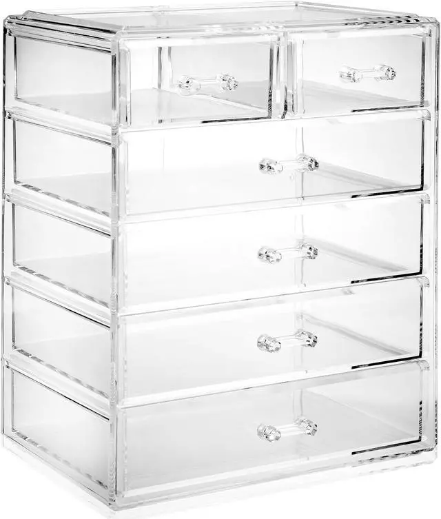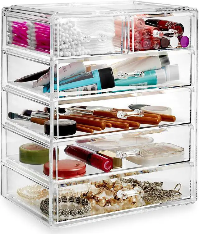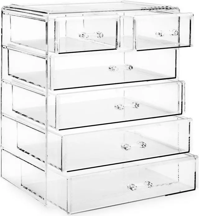 This cosmetic and jewelry organizing solution is highly practical for the bathroom, office, and more. Easy open drawers are fully removable offering multi-sized storage options to accommodate a variety of different items. Whether storing lipstick, gloss, bronzer, blush, brushes, mascara, eyeshadow and the like, organizing your makeup collection has never been easier.