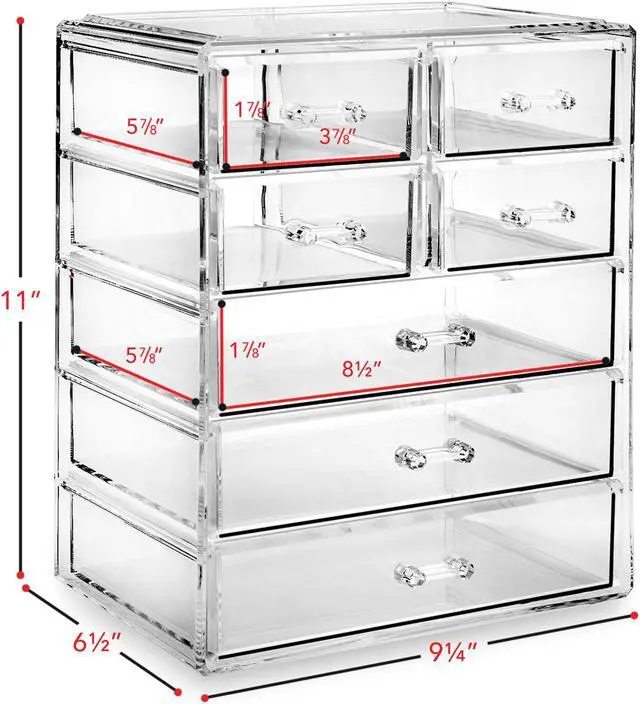 This cosmetic and jewelry organizing solution is highly practical for the bathroom, office, and more. Easy open drawers are fully removable offering multi-sized storage options to accommodate a variety of different items. Whether storing lipstick, gloss, bronzer, blush, brushes, mascara, eyeshadow and the like, organizing your makeup collection has never been easier.