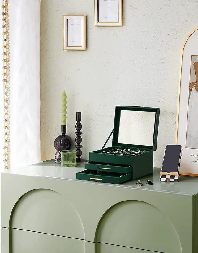 [Transparent Glass Lid] Under the clear glass lid of this jewelry box, all of your favorite jewels are visible at a glance and well-protected from dustpicking out what you want is a breeze now