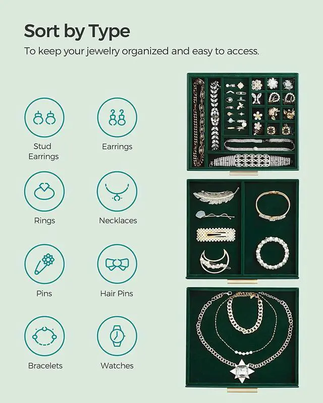 [Oodles of Storage] With 3 layers and 19 compartments of varying sizes, all your treasures will find their places in this jewelry box, from bracelets to rings and necklaces. No more missing pieces!