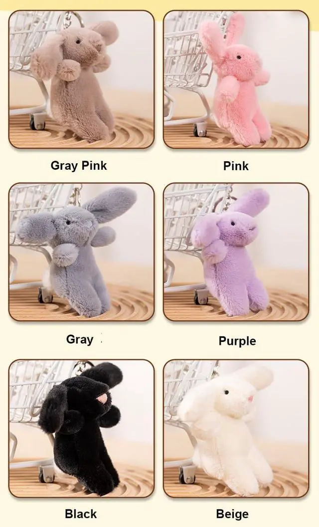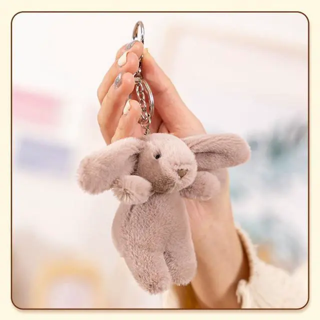 Mini Stuffed Bunny: The big ear bunny is 3.5 inches tall, small plush keychain for backpack.