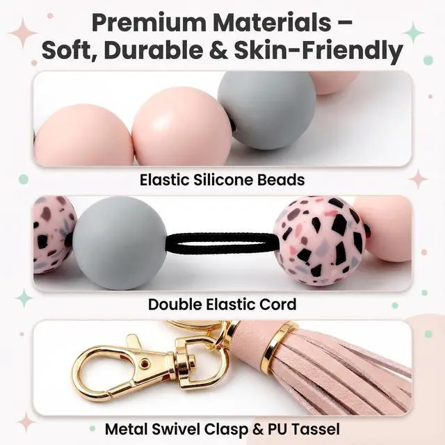 Experience the convenience of our versatile wear options. This keychain bracelet adapts to your style, allowing you to wear it as a wristlet or use it to accessorize your bag. With its flexible design, you can keep your keys close at hand while adding a touch of flair to your everyday look.