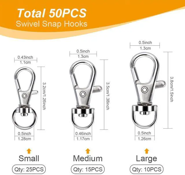 - 50x swivel clasps( Large: 10Pcs, Medium: 15Pcs, Small: 25Pcs)