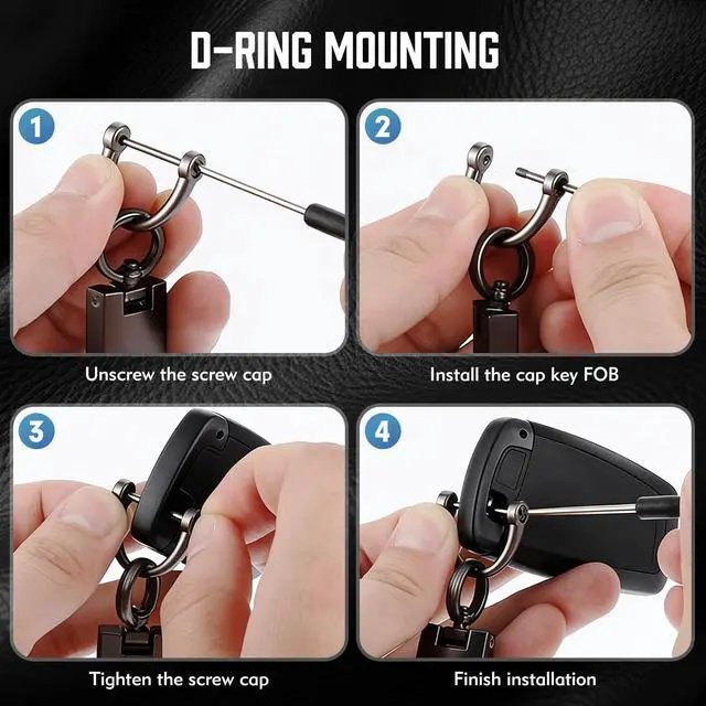 • Secure Anti-Loss ProtectionThis black keychain is equipped with a screw-tightened D-ring and quick-release buckle to prevent keys from accidentally slipping off. The buckle opens with a simple press for easy access when you're on the go.