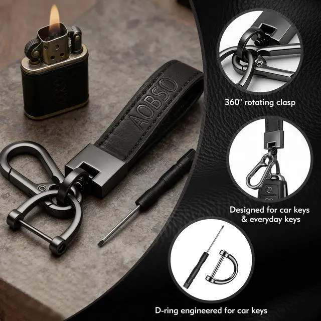 • Thoughtful Gift ChoiceThis premium leather keychain makes a perfect gift for birthdays or holidays. The set includes 1 leather keychain, 1 mini screwdriver for D-ring installation, and 3 key rings, beautifully crafted and packaged.