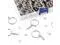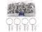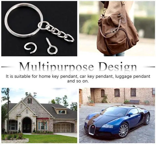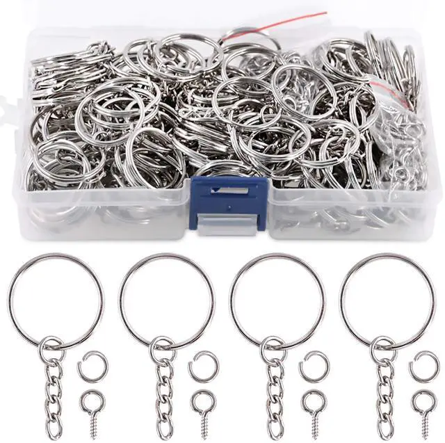 Quantity: 150 pieces Assorted Sizes metal key rings with chain, 150 pieces open jump rings and 150 pieces screw eye pins