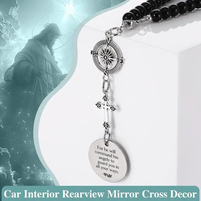 • Car Mirror Decor: Angel Car Charm&Cross Car Charm engraved with sentence "Wherever you go. Whatever you do,may your guardian angel watch over you". "For he will command his angels to guard you in all your ways" charm, perfect car accessories for rear view mirror accessories for new driver