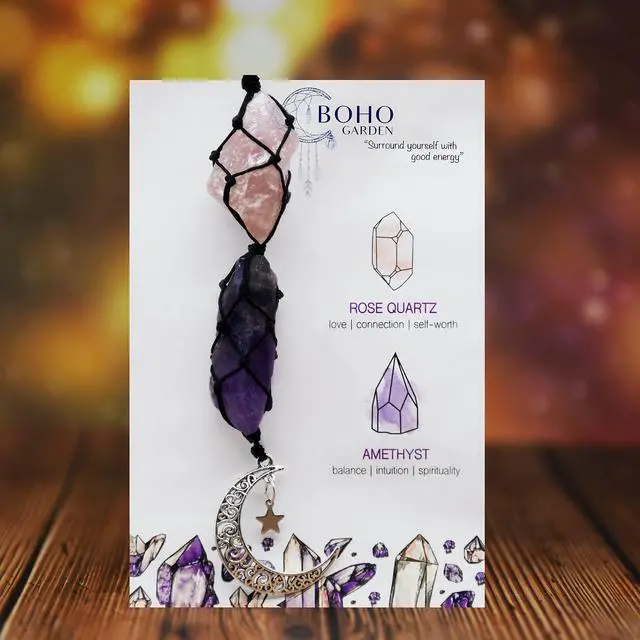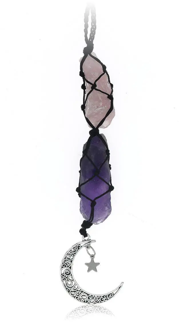 Whether you are going through a rough patch or just need some more positivity in your life, our car charms will make excellent companions. Each one features natural crystals paired with a crescent moon and star charm, all strung together with a nifty rope for easy hanging.