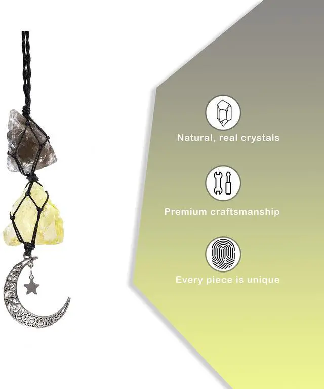 Whether you are going through a rough patch or just need some more positivity in your life, our car charms will make excellent companions. Each one features natural crystals paired with a crescent moon and star charm, all strung together with a nifty rope for easy hanging.