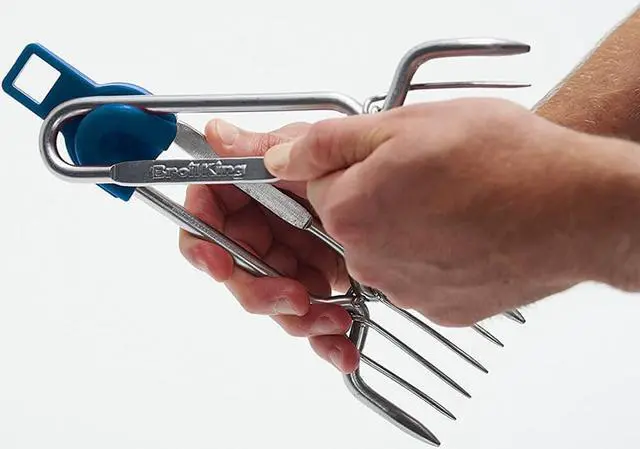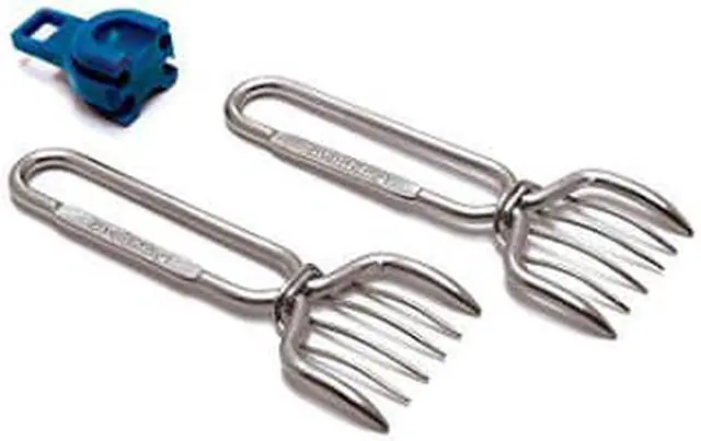 Designed to hold and pull pork roasts, pot roasts, and poultry Silicone holder/hanging coupler included Silicone coupler is heat resistant to 500F Dishwasher safe