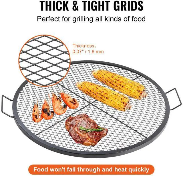 X-Marks Fire Pit Grill Grate, Round Cooking Grate, Heavy Duty Steel Campfire BBQ Grill Grid with Handle and Support X Wire, Portable Camping Cookware for Outside Party & Gathering, 36 Inch Black