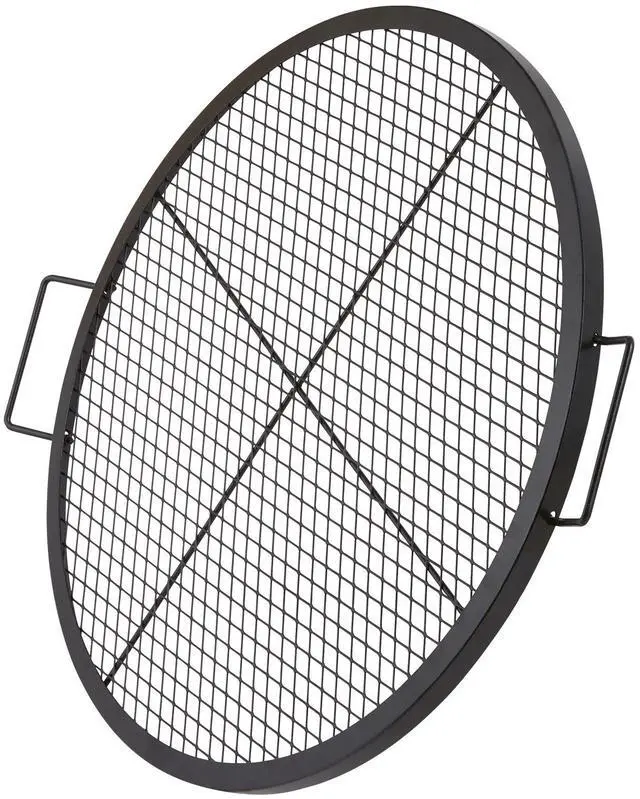 X-Marks Fire Pit Grill Grate, Round Cooking Grate, Heavy Duty Steel Campfire BBQ Grill Grid with Handle and Support X Wire, Portable Camping Cookware for Outside Party & Gathering, 30 Inch Black