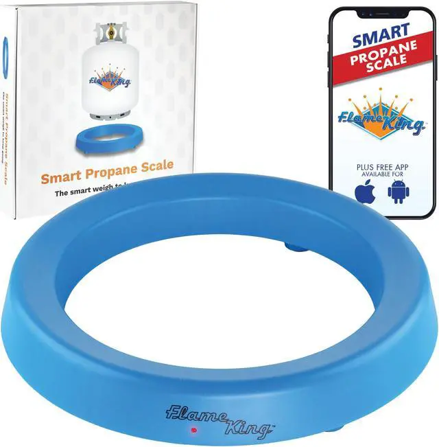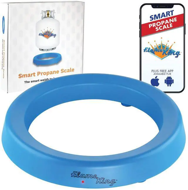 Have you ever gone to start up the grill to cook some delicious barbeque and then realized your propane tank is out of gas? Never run out of propane again! With the help of the Smart Propane Tank Scale from Flame King. Advanced smart technology works to help you track and measure the gas levels of your tank. It works with Bluetooth and our free app so you can monitor weight on your mobile device or phone. Download our free app on either iTunes or Google and easily connect your scale to your mobile phone or device. Its super convenient and easy to use! Now youll always know when your tank needs to be refilled! PRODUCT FEATURES: Bluetooth Connectivity Measures: 12 x 2. 5 inches Free Smart Scale App Compatible with 20, 30 and 40 lb. Cylinders 2-AA Batteries (not included)TRACK PROPANE LEVELS WITH YOUR PHONE Monitoring and tracking the gas levels in your propane tank is super easy with smart technology. Our wireless scale connects to your phone using Bluetooth connectivity and our free smart scale app. With the app you can weigh and measure gas level percentages. The app stores measurements with a date stamp directly in the app so you dont have to remember and it keeps track of the last time you used it. Weve also added a bonus feature that helps you monitor your long-term propane consumption. HOW IT WORKS To get started download our free app. You get free readings for 20 lb. tanks and a free trial for 30lb and 40 lb. tanks followed by an in-app purchase of $1. 99. Our app will ensure your device is ready to go, so no need to worry about your Bluetooth device settings. Turn on the Flame King Smart Propane Scale using the switch at the bottom then place your propane tank on the scale and tap connect scale in the app. We recommend keeping the scale near or better yet, under your tank. To save the battery life, make sure to turn the scale power off after each use.