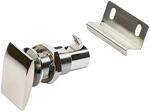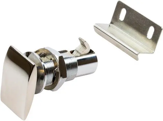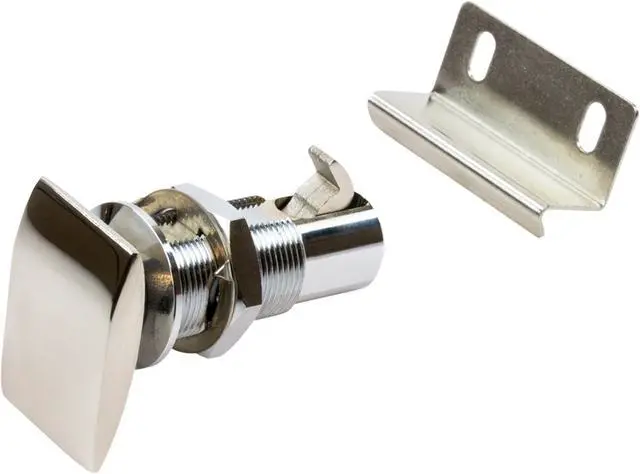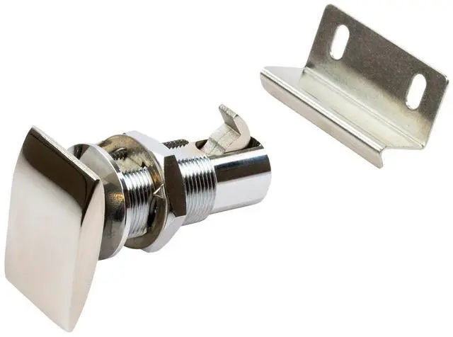 Push Button Cabinet Latch - RectangularThese corrosion resistant 316 stainless steel Cabinet Latches function as both a latch and handle. Push button operation activates and secures the latch with a simple deliberate motion. Positive action locking function prevents cabinets from opening while in motion. Easy to install by boring a single 3/4” hole. Suitable for left or right-hand side uses. Sleek low-profile design makes them convenient in tight spaces. Great for glove compartments. Includes catch.